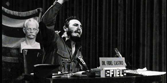 Fidel Castro en comparecencia el 15 de octubre de 1960 ante el Frente Independiente de Emisoras Libres, con el que se realizó la intervención estatal de todos los medios de información radiales y televisivos privados.