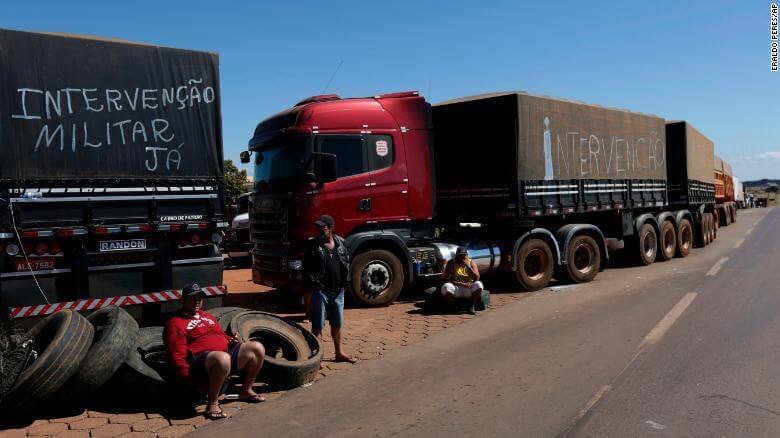 Los camioneros enfadados con el aumento en los precios del combustible bloquearon las principales carreteras en todo Brasil desde el 21 de mayo, impidiendo la entrega de productos a los supermercados y los combustibles a las estaciones de servicio.