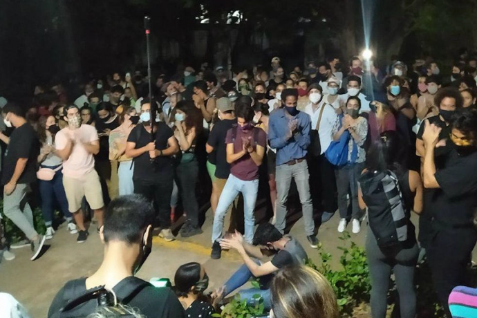 Primero 50 y luego alrededor de 300, en su mayoría jóvenes artistas, se congregaron espontáneamente frente al Ministerio de Cultura.