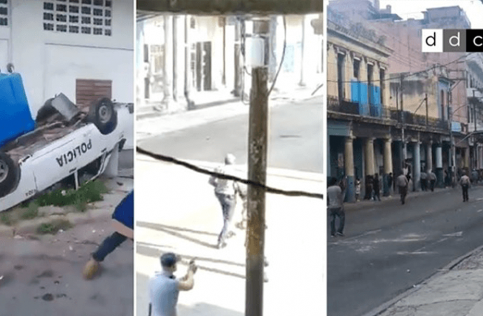 La Habana (DDC) – La Policía disparó a varios manifestantes en La Habana durante las protestas pacíficas de este domingo en Cuba, según videos divulgados en las redes sociales.
