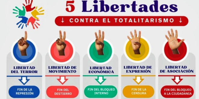 (Yolanda Huerga / Martí Noticias) – Un grupo de cubanos, de la Isla y el exilio, hicieron público el manifiesto “El contrapaquetazo del pueblo: 5 Libertades contra el Totalitarismo” que busca aunar voluntades para exigir el cambio urgente que requiere la sociedad cubana.