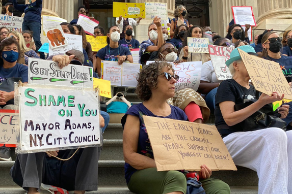 Estas acciones son la forma que tiene la ciudad de desfinanciar y desmantelar la educación infantil en Nueva York, haciendo imposible que los centros funcionen, por lo que muchos han cerrado o están al borde de la insolvencia. Mientras tanto, la ciudad está reforzando el presupuesto de la policía en 5.500 millones de dólares, al tiempo que recorta considerablemente los presupuestos de las bibliotecas y las escuelas K-12.