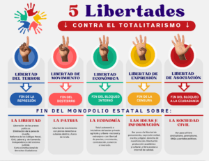 El contrapaquetazo está constituido por cinco libertades básicas que pondrán fin al control totalitario: Libertad, patria, economía y sociedad civil.