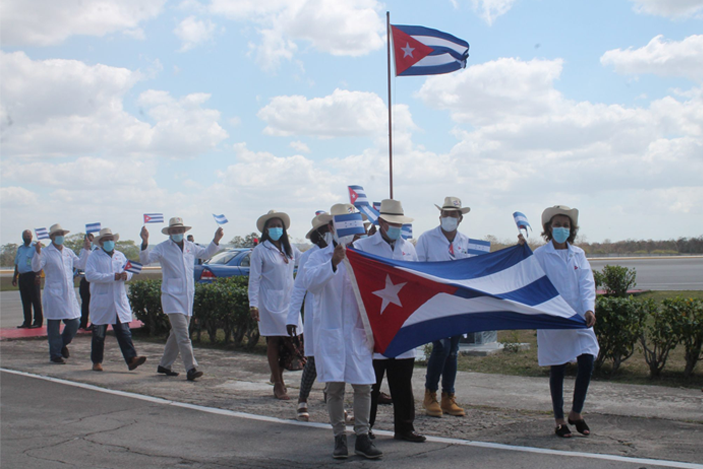 Un equipo de 25 profesionales de la salud cubanos regresa a Cuba de Honduras luego de una misión médica en ese país en el 2020.