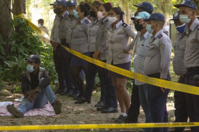 “Las inmediaciones de la embajada de Panamá en Cuba está repleta de policías y agentes vestidos de civil listos para reprimir a los manifestantes cubanos que exigen que les permitan abandonar la isla sin visado de tránsito”, suscribió el reportero en Twitter.