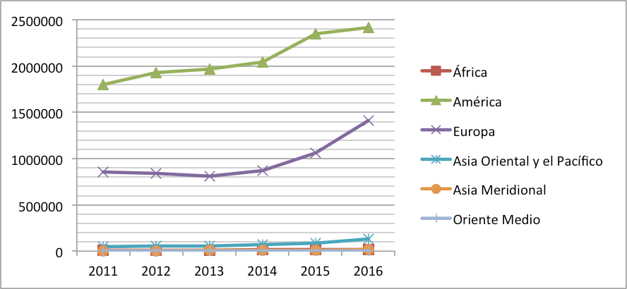 La distribución de visitantes por continentes o región geográfica, responde además a factores económicos, sociales y políticos.