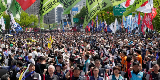“En los dos últimos años, bajo el gobierno de Yoon Suk Yeol, las vidas de nuestros trabajadores se han sumido en la desesperación”, dijo en un discurso Yang Kyung-soo, líder de la Confederación Coreana de Sindicatos, que organizó la marcha. “No podemos ignorar al gobierno de Yoon Suk Yeol. Les derrocaremos del poder nosotros mismos”.